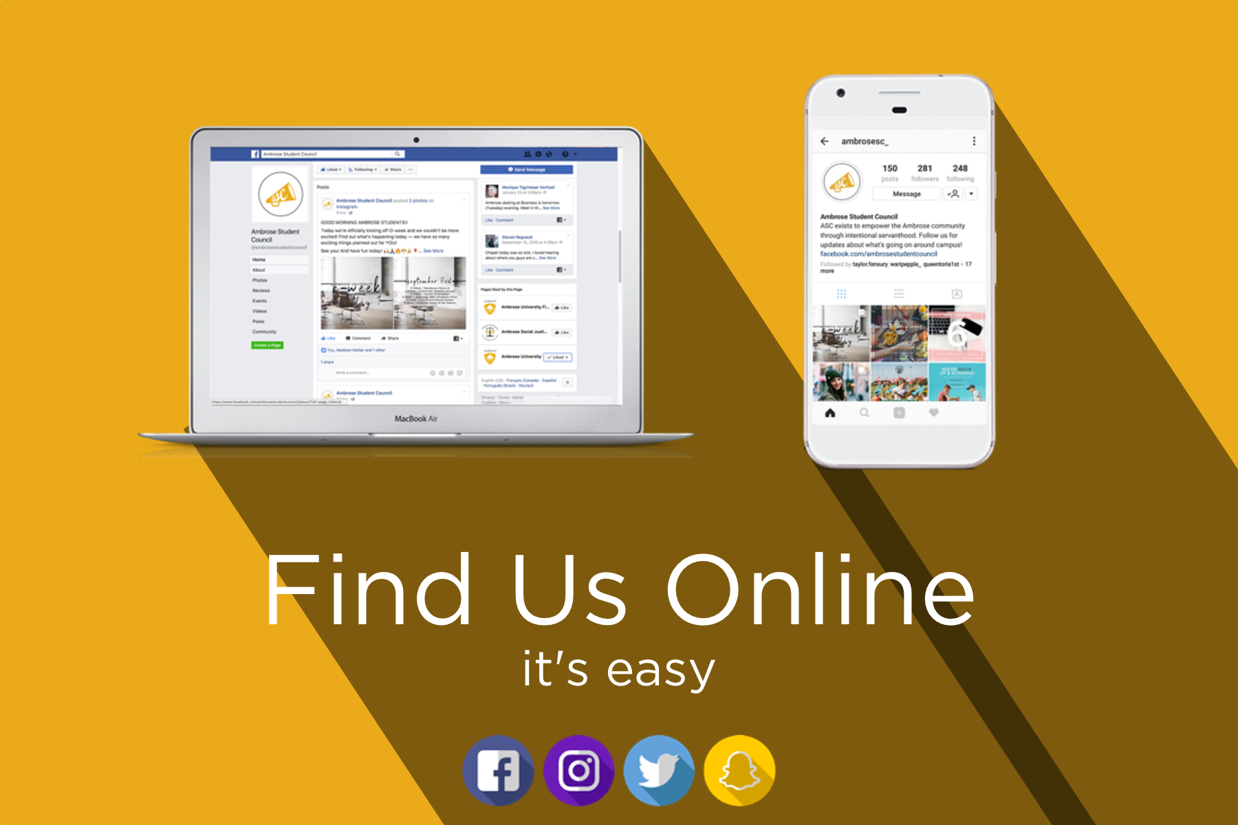 For the academic year of 2017 – 2018, I was the VP of Marketing and Communications for the Ambrose Student Council. This included managing all communications for Student Leadership activities, Social Media, Capture, and managing a media team for the Student Council.
